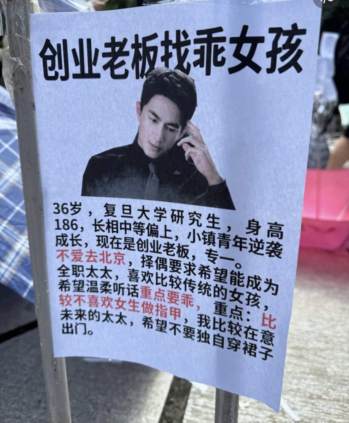 在相亲角也出现一找赘婿的美女,还惹起了争议。